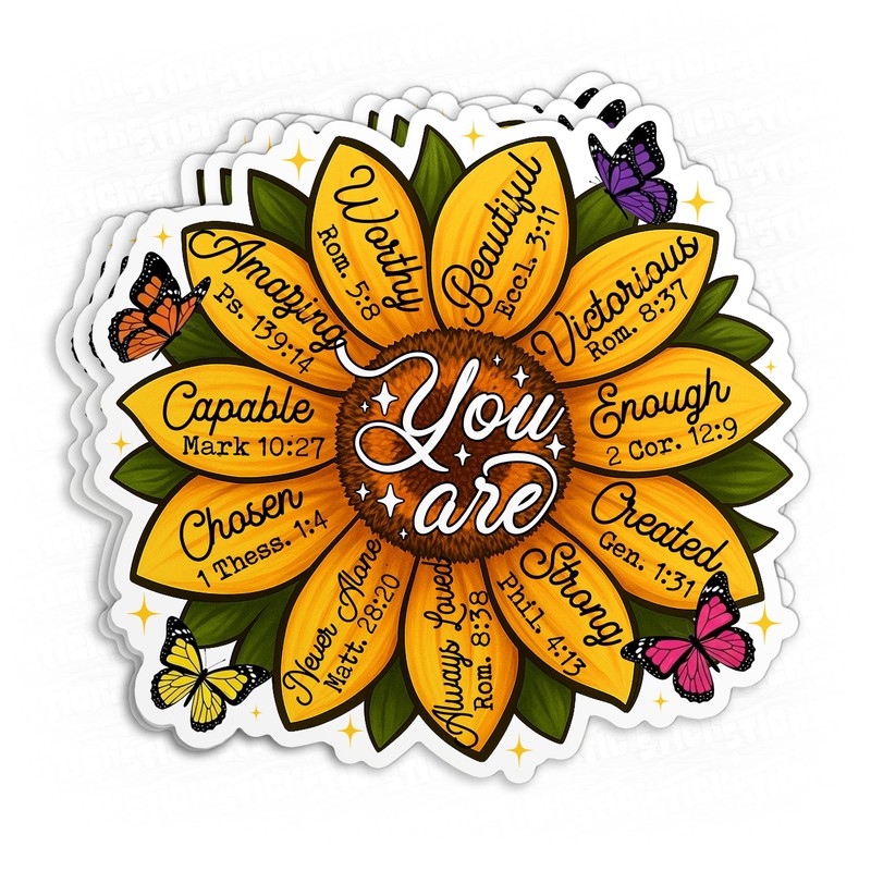 (3Pcs) You are Amazing Beautiful Enough Sticker Sunflower Christian Bible Verse Waterproof Vinyl Sticker Laptop, Water Bottles, Phone Merchandise Decor Decal Gifts for Her Him 2 inches