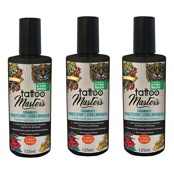 Descripción Limpia: 3 pz de Tattoo Master´s Protector y Abrillantador para Tatuajes 125 ml c/u