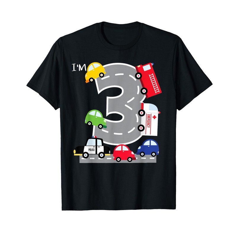 - Does your little one love trucks transportation vehicles & things that go ? Cute colorful fire truck ambulance police car city vehicles cars and a big number three road birthday for boys. Cars Trucks themed birthday party supplies for boys turning 3.