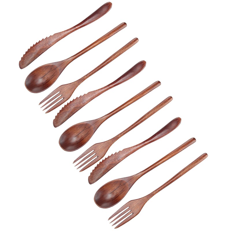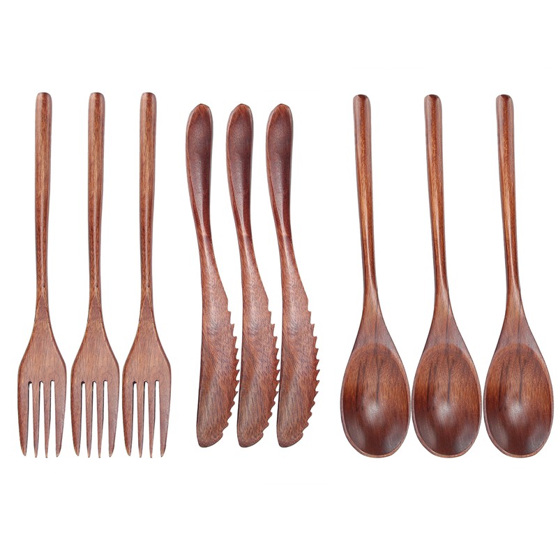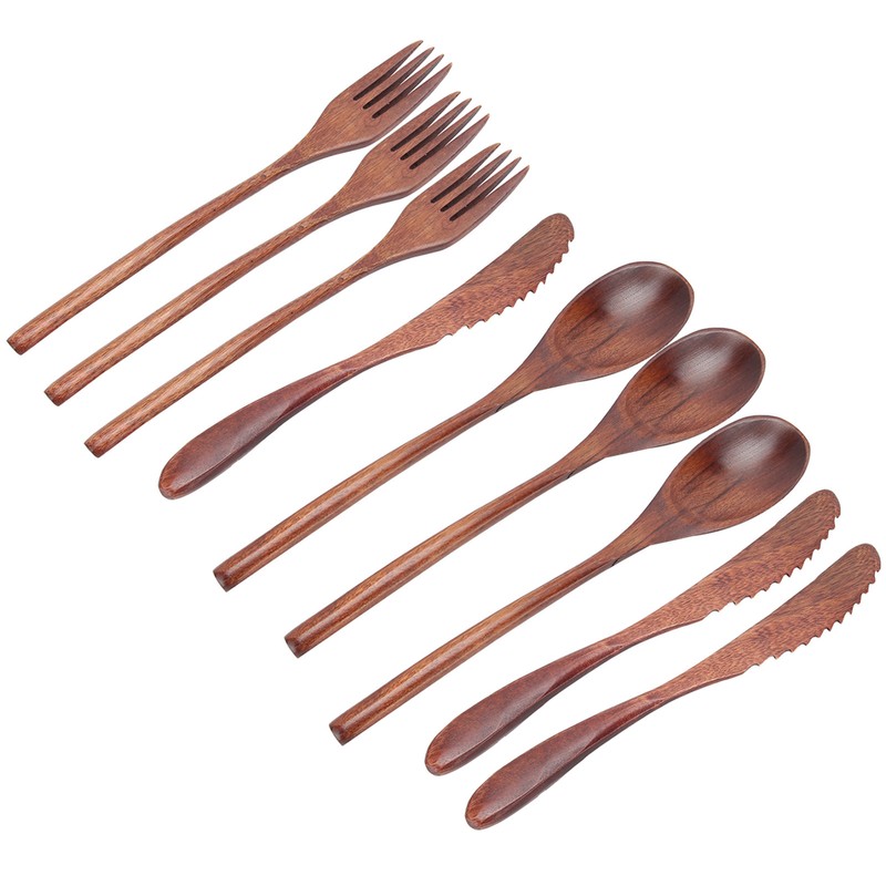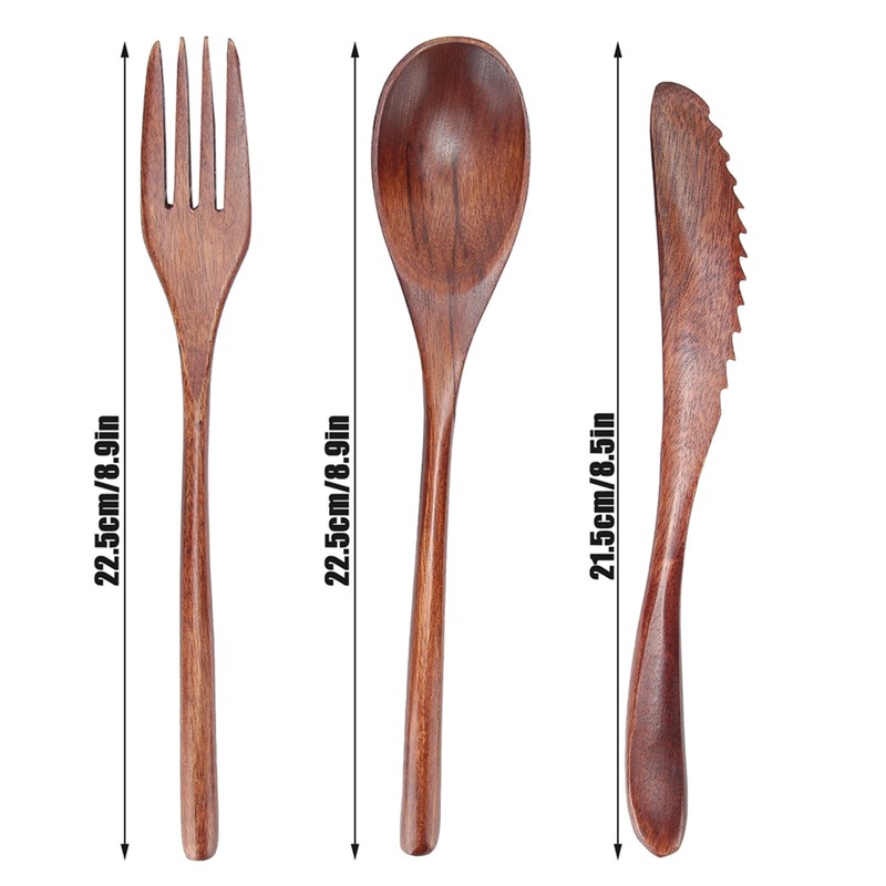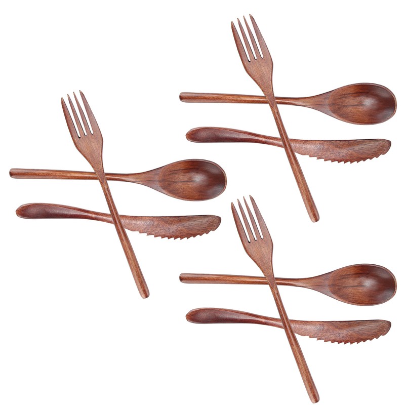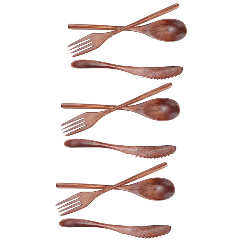 3Set Tableware Wooden Fork Spoon Knife Kit Kitchen Cutlery for Home Cafe Restaurant