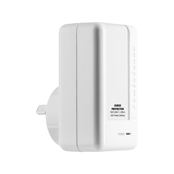 3sixT PowerGuard 32W USB-C Plus USB-A Surge Protector, White