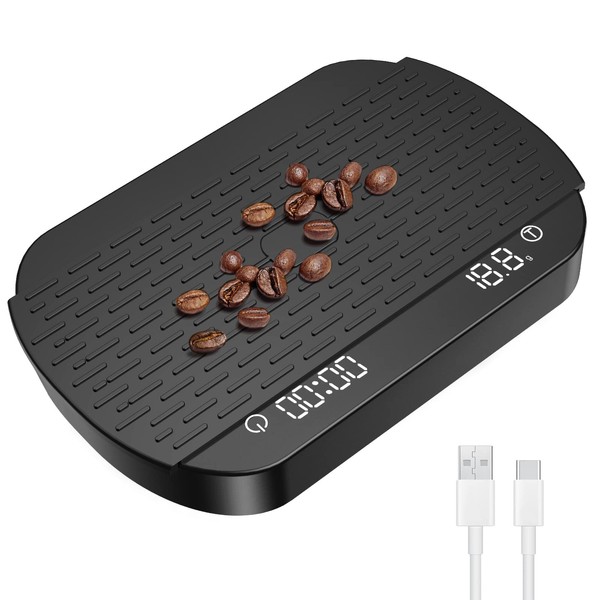 3T6B Coffee Scale with Timer, Espresso Scale with Flow Rate Function, 3000g/0.1g High Accuracy, Rechargeable Digital Coffee Scale for Pour Over Drip Coffee