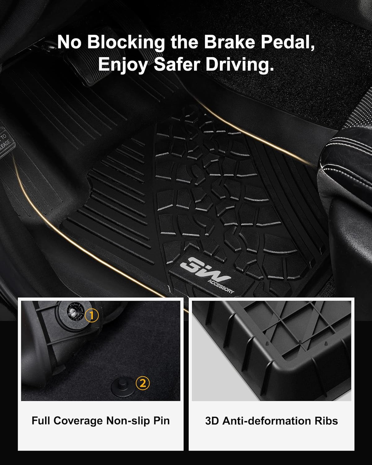 3W Floor Mats Fit For Jeep Gladiator JT 2020-2024 TPE Floor Mats With Grey Logo