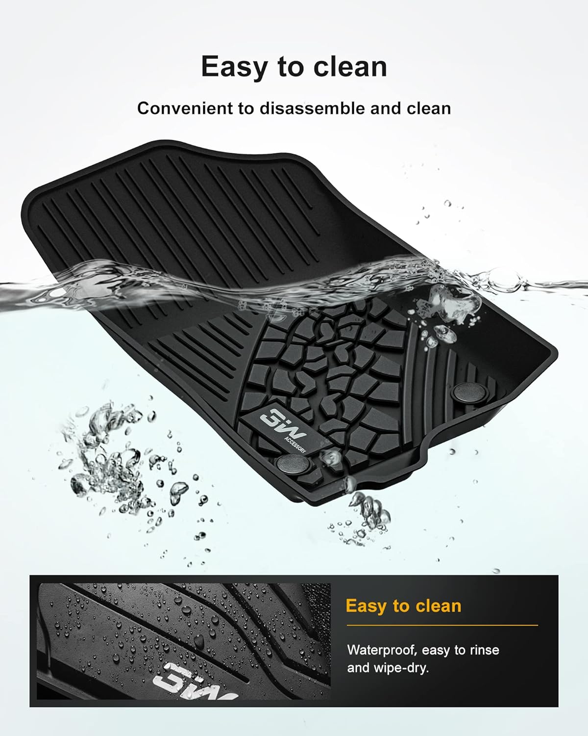 The mats are Waterproof , easy to install, clean and maintain. After hosing and drying with a dry towel, all the dirt will be removed. The liners will look brand new again.3W car mats are the ideal choice to protect the resale value of your vehicle.