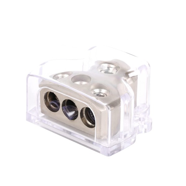 3Way Zinc Alloy Power Distribution Block Connector 1 * 0 Gauge Input/3 * 4 Gauge Output for Car Circuit Audio Distribution Splitter