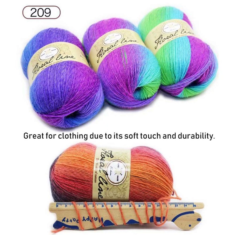 - [Multicolor Rainbow Yarn]: Our wool yarn have carefully selected 20 difference colors for you, bright and lustrous. Will not fade or shrunk after washing. Hand wash or machine wash both avalible, machine wash should be done so with care, naturally dry, do not bleach, do not iron. The width of the yarn is about 2 mm.