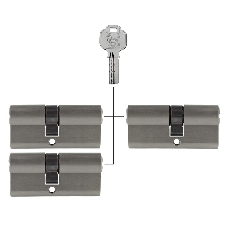 - 3 x simultaneous locking profile cylinders 65 mm 30/35 – locking pins: 5 – material: coated brass