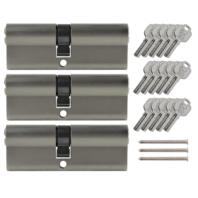 3x Profile Cylinder 85 mm 40/45 Simultaneous Locking Including 15 Keys