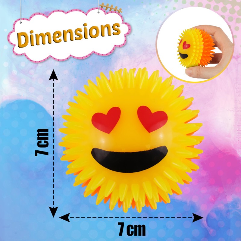 - ✅LIGHT UP BALL: These mini stress balls are perfect for indoor & outdoor sports or plays. 3Pcs Two Tone Led Emoji Smiley Face Random Color Spiky Ball with required Battery: 3 x LR41. Massage roller ball is Activated by Bouncing on The Floor or Squeezing.