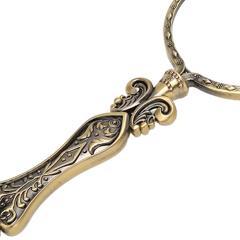 1、3X Magnifying: It is perfect for everyday activities and improving visual clarity. Whether you need to read small print, coupons, newspapers, or other documents, 3X magnification offers enhanced clarity for better visibility. 2、Vintage Style: It features a vintage style that adds a touch of fashion and elegance. Its retro appearance makes it a stylish and sophisticated accessory. 3、Exquisite Pattern: It has a handle engraved with intricate vintage patterns, adding to its delicate aesthetic. It is a visually appealing tool that stands out with its design. 4、Slipless Handle: The pattern on the handle serves as a slipless feature, providing a firm grip during use. It allows for comfortable magnification without worrying about slips or drops. 5、Versatile Usage: It is ideal for magnifying jewelry, paintings, carvings, handicrafts, stamps, sewing, and repairing small accessories. It serves as a valuable tool for various hobbies and professional tasks.