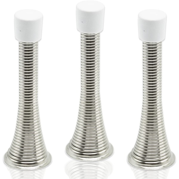 3X Wall Mounted Chrome Spring Door Stop Sprung Stopper Skirting Board Buffer with 3X Replacement Rubber tip