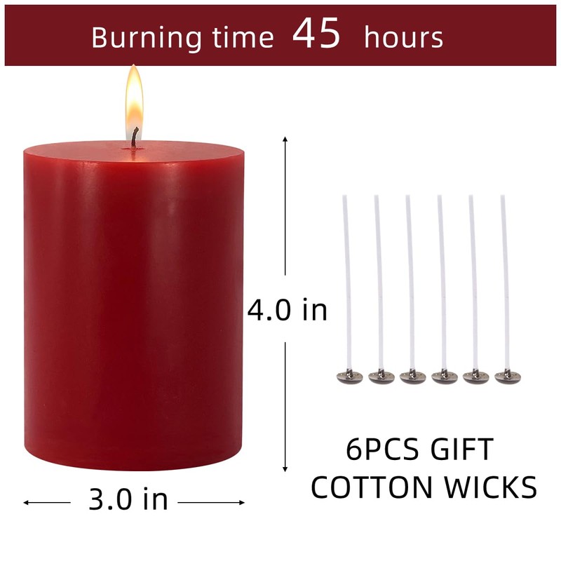 - Long Burning: The burning time of each unscented red pillar candle up to 45 hours, a total of about 180 hours, our odorless candles are designed to give you many hours of enjoyment.