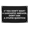- Cool banner with quote "IF YOU DON’T WANT A SARCASTIC ANSWER, DON’T ASK A STUPID QUESTION" college dorm room decor man cave, wall indoor outdoor flag, funny tapestry home office.