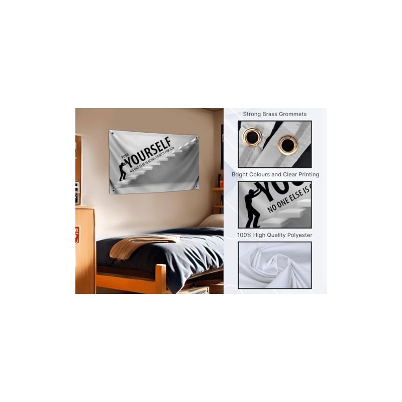 - A great flag/banner/poster/gift for students, sport teams, friends, coworkers, father, son, grandpa, family, organization, oung people, etc. Motivational flag for room guys, dorm posters for guys.