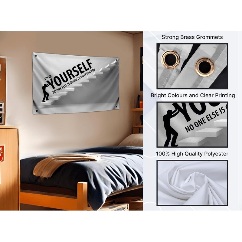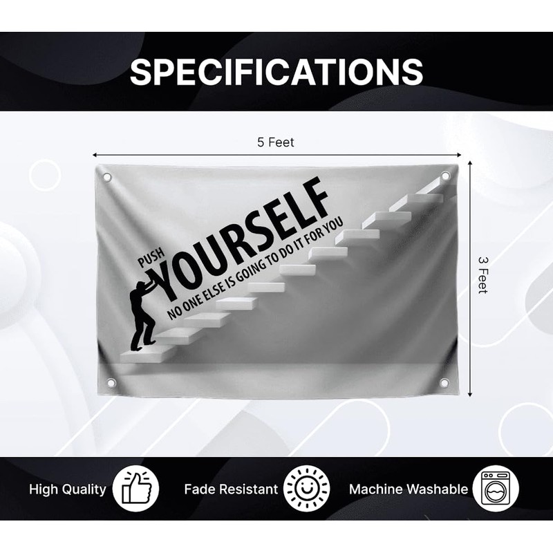 3x5 Feet Motivation Quoted Flag "Push Yourself No One Else Is Going To Do It For You" with Four Brass Grommets - Positive Quotes Posters for Men and Women - Inspirational Wall Decorations for Home