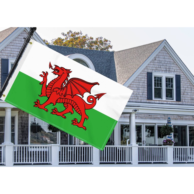 3×5 FT Welsh Flag, Large 100D Wales Dragon National Outdoor Banner,Cambrian Doube Side Printing Decor For Patio Garden With Brass Gromment