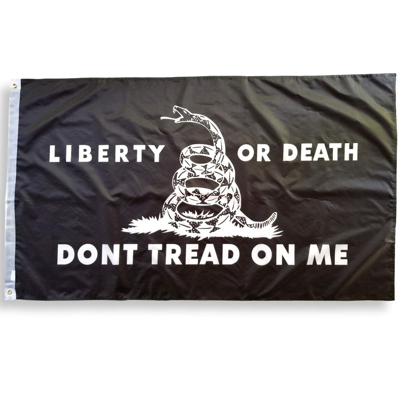 3x5 Liberty or Death Flag Black Gadsden Flag with Double Stitched Edges, 100% Polyester Fabric, and Two Brass Grommets, Patriotic Flags, Don't Tread On Me Flag, 3x5 Dont Tread On Me Flag