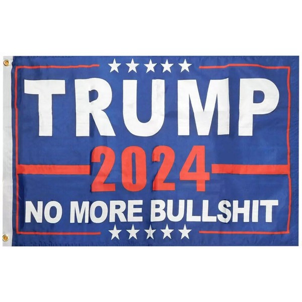 3X5 Trump 2024 No More BS BullShit Blue 100D Woven Poly Nylon Flag Banner