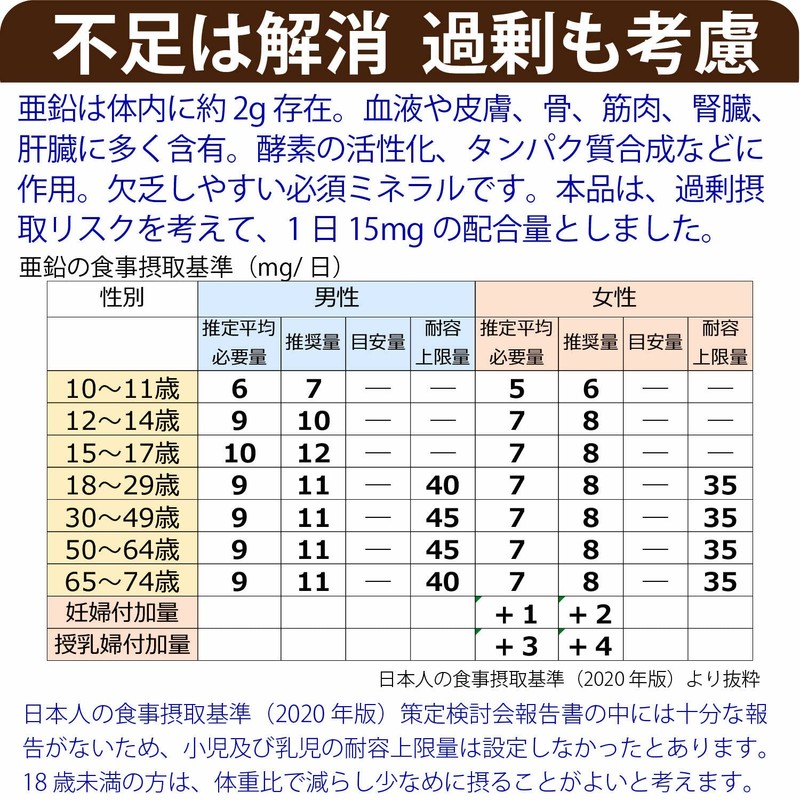 主要成分量:亜鉛15mg/1日(1粒)あたり