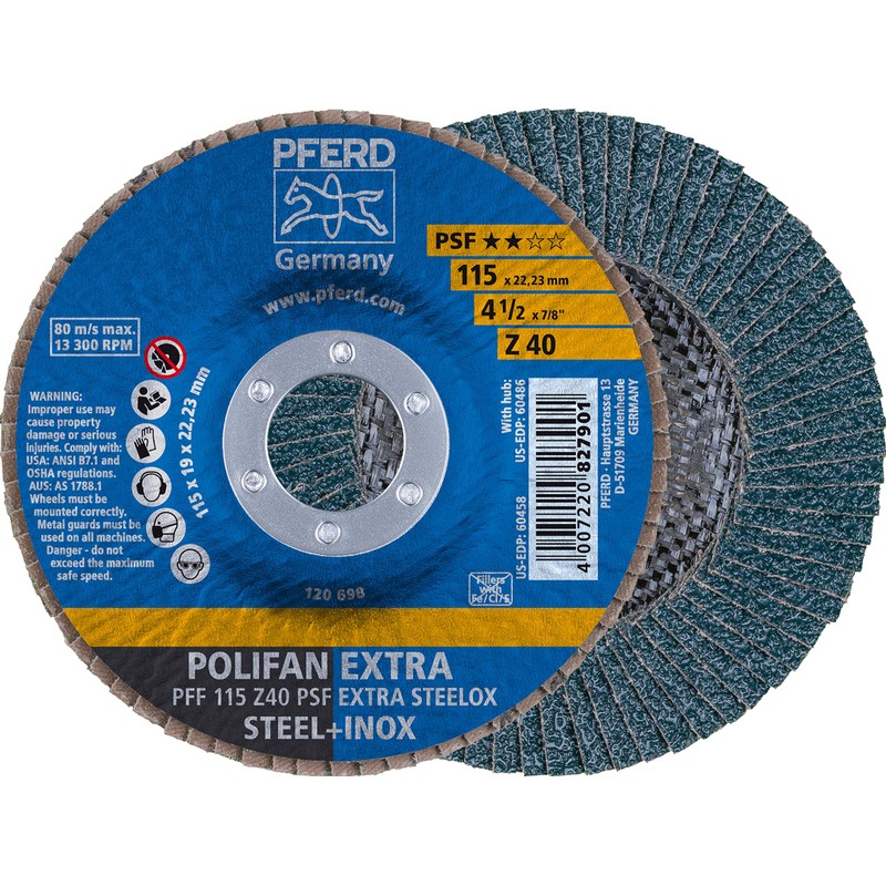 4-1/2" x 7/8" POLIFAN® Flap Disc - Flat PSF-Extra, Zirconia, 40 Grit