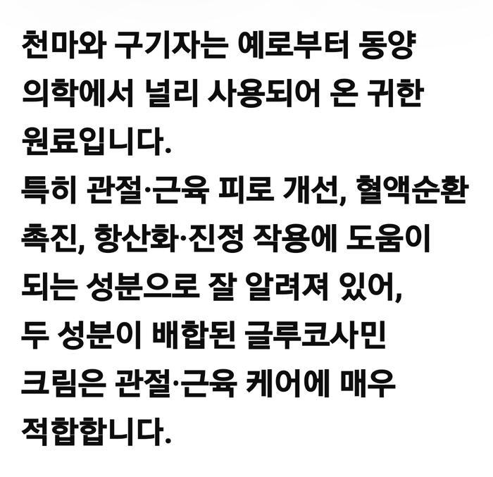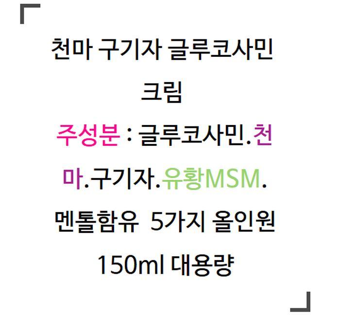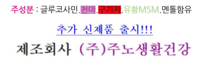주성분 : 글루코사민.천마.구기자.유황MSM.멘톨함유