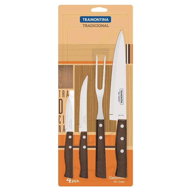 トラモンティーナ 木柄バーベキューカトラリー トラディショナル 4本セット 軽量 天然木 ブラジル製 22299/019 TRAMONTINA