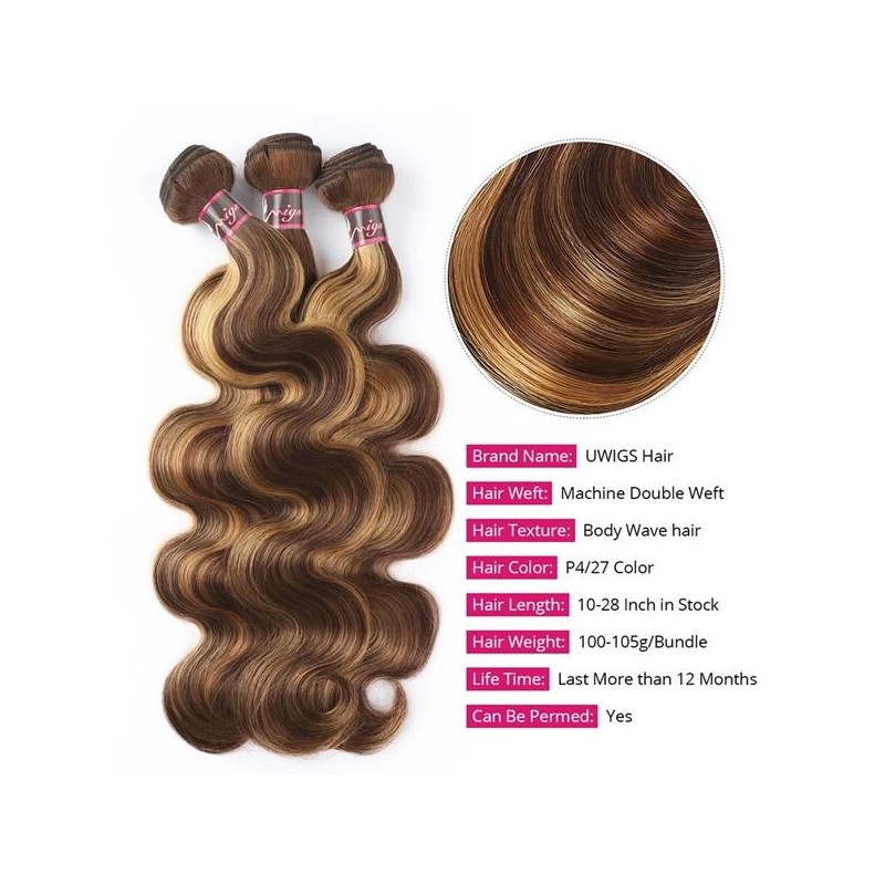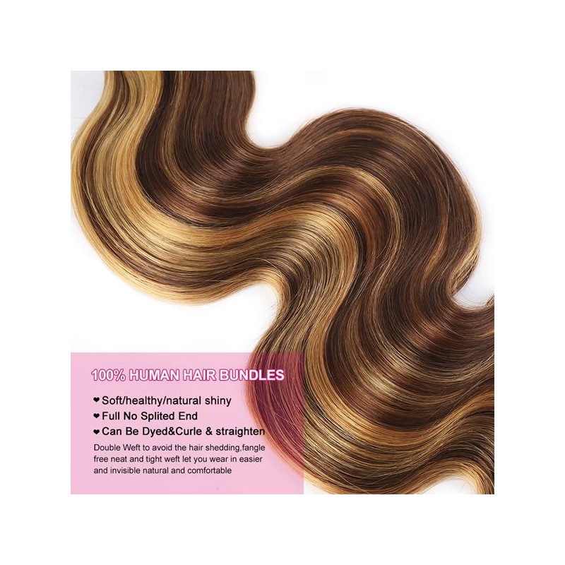 4 27 Highlight Body Wave Bundles Ombre Colored Human Hair Weave Bundles 1 3 4 Bundles Deal - Size: 26 26 26 inches, Color: P4 27 Highlight