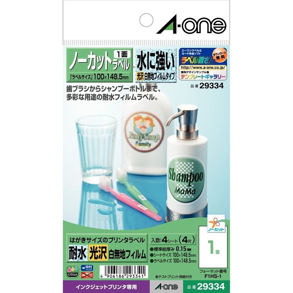 エーワン ラベルシール インクジェット 耐水 光沢フィルム はがきサイズ ノーカット 4シート 29334
