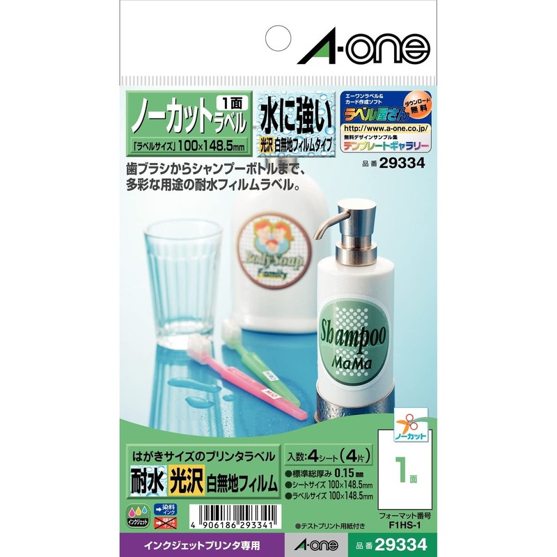 - Water-resistant glossy white plain film type / Sheet size: Postcard size (3.9 x 5.8 inches (100 x 148.5 mm) / Label size: 3.9 x 5.8 inches (100 x 148.5 mm) (1 row x 1 tier)