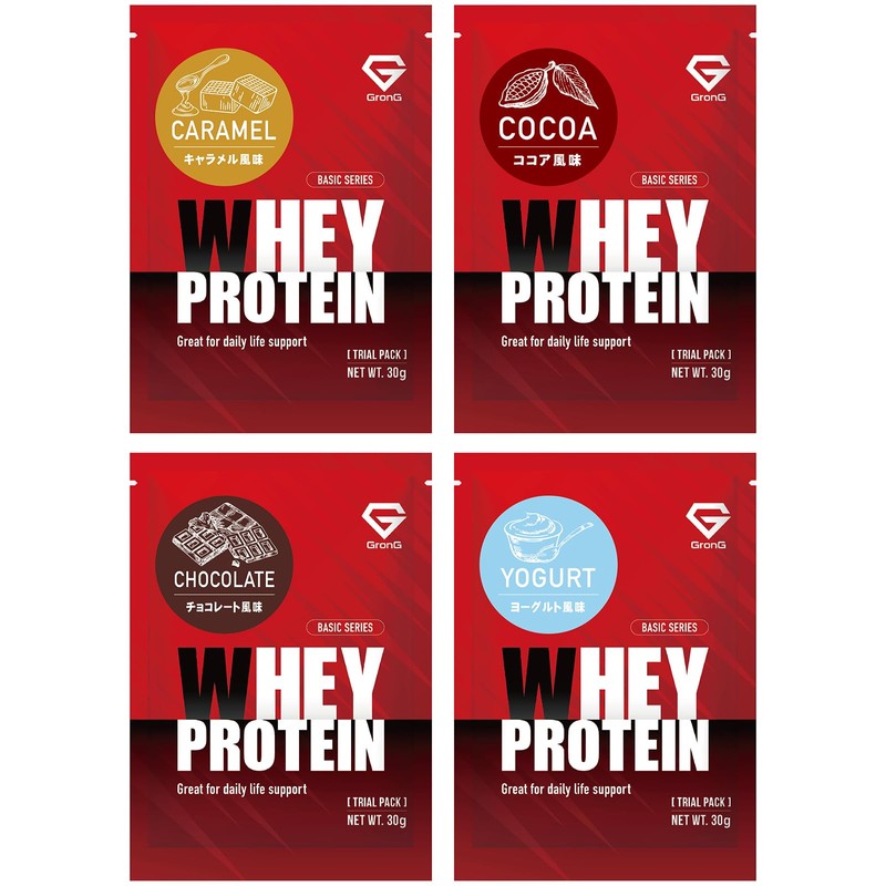 グロング プロテイン お試し セット ベーシック ホエイ 4種 小分け 個包装 国内製造 30g x 4