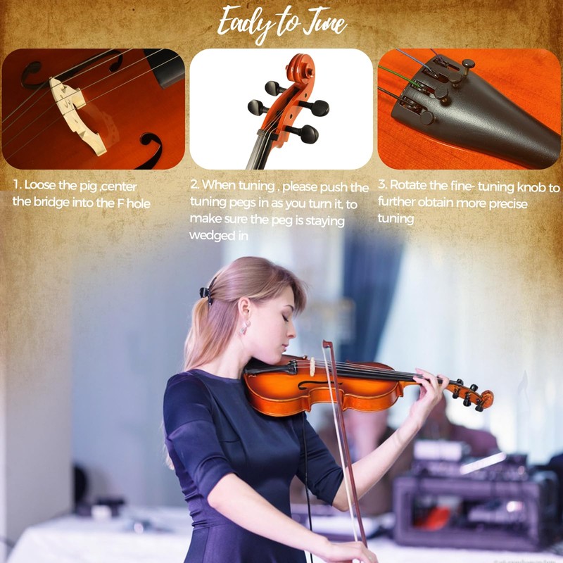- Precision-Tuned for Professional Sound Quality:Pre-adjusted soundpost and ebony tuning pegs ensure stable intonation and crisp projection. The optimized string height allows effortless fingering, accelerating progress from beginner to intermediate levels.