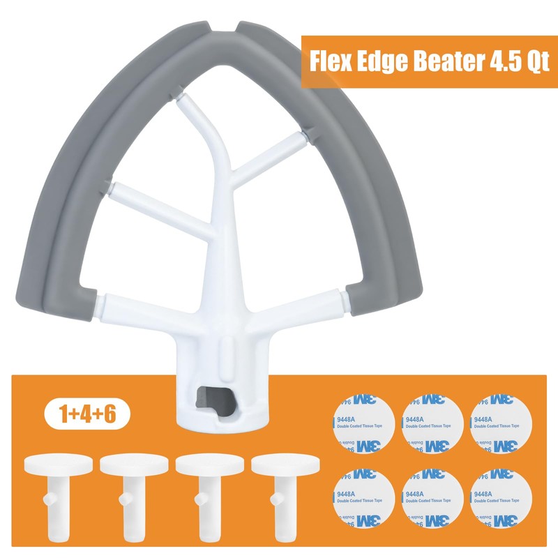 4.5-5 Quart Flex Edge Beater, for Kitchenaid Mixer Attachments, whit 4 Attachment Holder and 6 Adhesive Backing