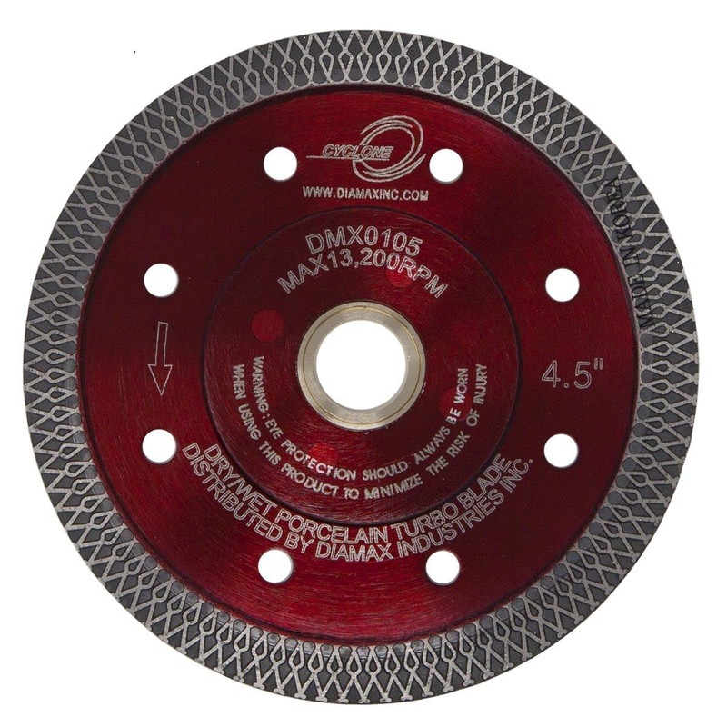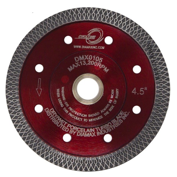 - (1) 4.5" Wet/Dry Porcelain and Tile Turbo Blade13,200 Max. RPM and Arbor 5/8" - 7/8" - 22mmThin rim for cutting porcelain without chippingCooler rim temperatures increase life and speed of your cut