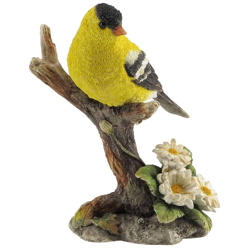 4.5 Inch Goldfinch Bird on Branch Decorative Statue Figurine, Yellow Details: