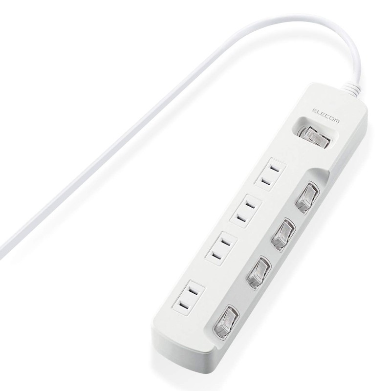 エレコム 電源タップ 雷ガード 一括&個別スイッチ スイングプラグ ほこりシャッター付 4個口 5m ホワイト T-K8A-2450WH