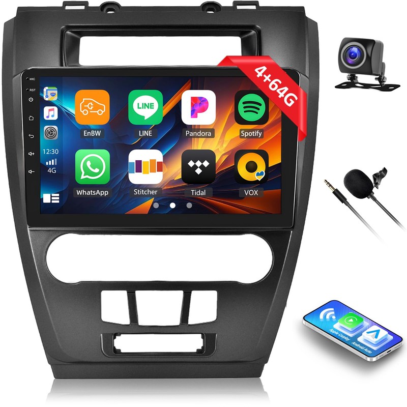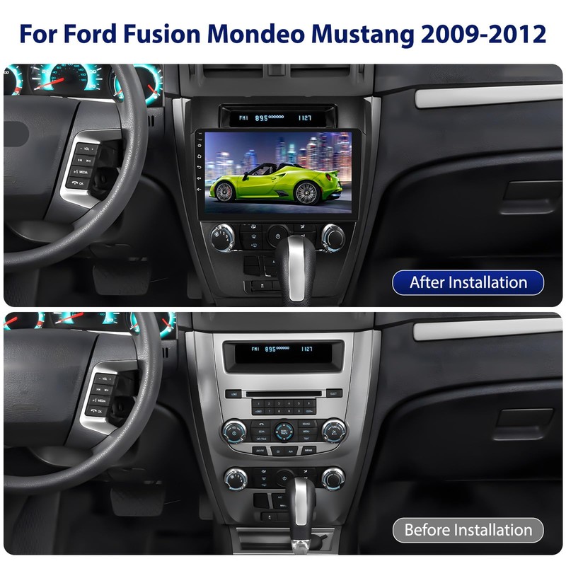 - 【Android 13 Car Stereo for Ford Fusion Mondeo Mustang】TIPS:If there is no sound, your original car with amplifier, the original amplifier control line to the red line ACC.The carplay car stereo fits for Ford Fusion Mondeo Mustang 2009 2010 2011 2012. Android 13 system, 10.1'' Capacitive touch screen, screen size is 228mm*218mm*130mm,4G RAM+64G ROM, running smoothly in colleges and universities.A variety of EQ sound effects scene selection.Capacitive touch screen,1280*720 high resolution