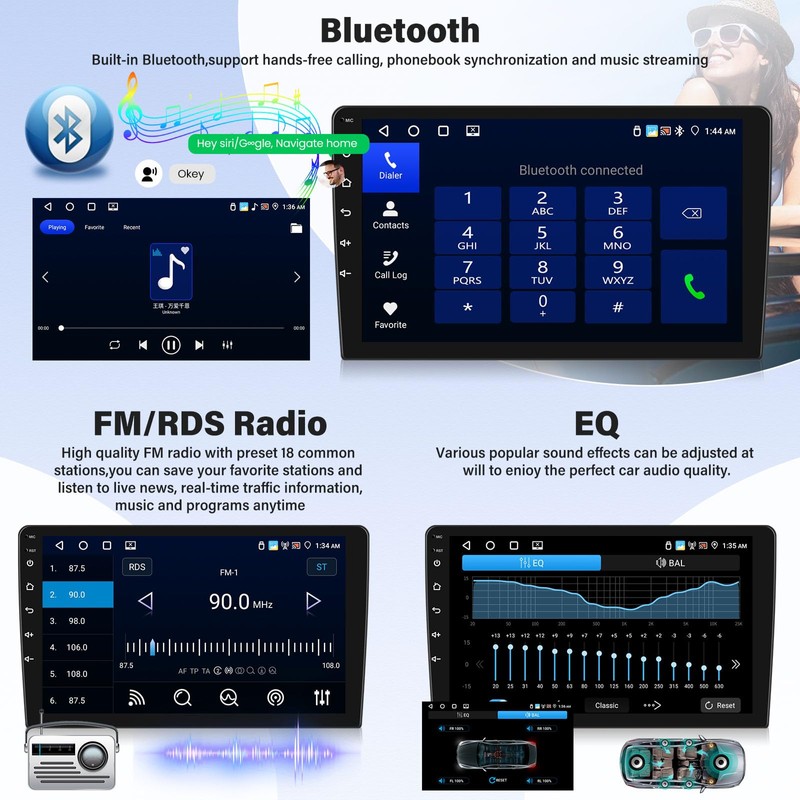 - 【FM/RDS Radio Receiver &Bluetooth】Bluetooth allows you effectively share music from mobile phone to the car stereo,answer phone call by hand free,calling and hang up phone with just one push of a button,daily driving easier and safer.Build in FM, automotive level chipset provides the best radio signal reception performance,let’s enjoy the best FM station and and drive with the rhythm of the city