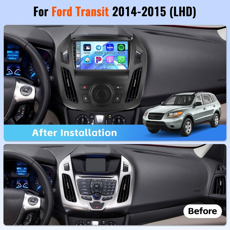 - Effortless Connectivity with CarPlay & Android Auto: This Android touch screen car stereo for Transit supports wireless CarPlay and Android Auto for easy access to your phone's apps. Activate voice assistants like Siri or Goo-gle Assistant to manage navigation, calls, messages, music, and other functions hands-free