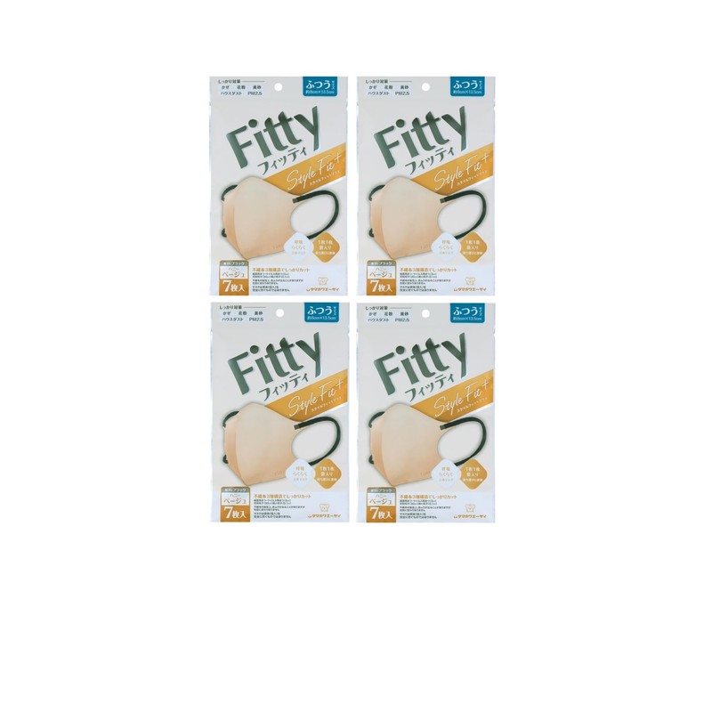 [タマガワエーザイ] (4個セット) フィッティ スタイルフィットプラス 立体 7枚入り ハニーベージュ×耳ゴムブラック ふつうサイズ マスク