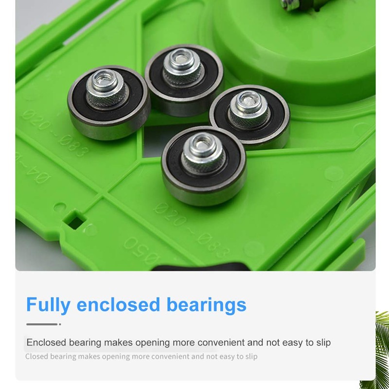 - Adjustable hole design: The opening length can be adjusted from 4-83mm, compatible with various sizes of hole saw blades. 4 removable bearings can be repositioned to 9 hole positions, flexible to adapt to different drilling needs.