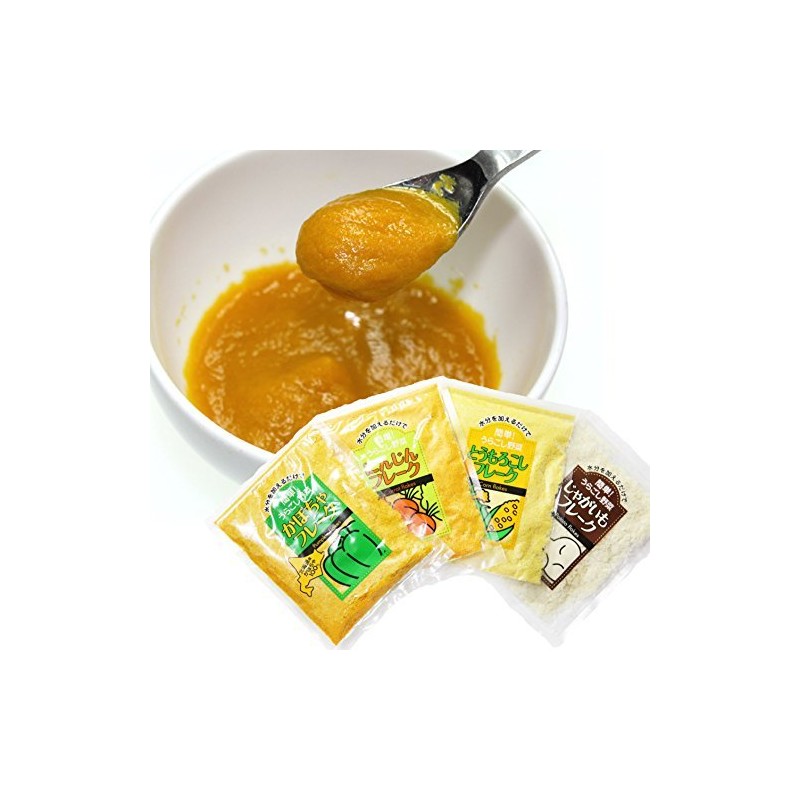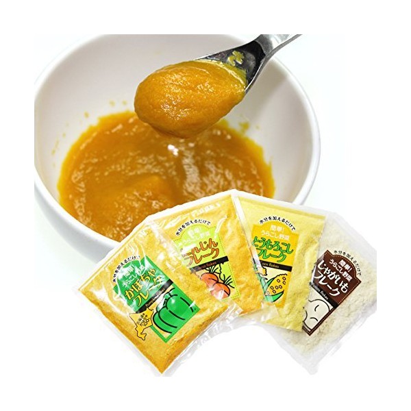 - Product details: Trial Mini Size Set of 4 Vegetable Flakes from Hokkaido. *1 Bag of Pumpkin Flakes, 1.5 oz (40 g) x 1 Bag of Carrot Flakes, 1.5 oz (40 g) x 1 Bag of Corn Flakes, 1.5 oz (40 g) x 1 Bag of Potato Flakes, 1.5 oz (40 oz (40 g) x 1 oz (40 g) with Convenient Easy Recipe