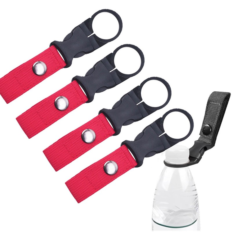 ペットボトルホルダー カラビナ付き ペットボトルカバー 散歩 アウトドア 折り畳 ブラック 軽量 携帯便利 分離 取り外し可能 ドリンク ホルダ 簡単脱着 アウトドア 装備 4枚セット(レッド)