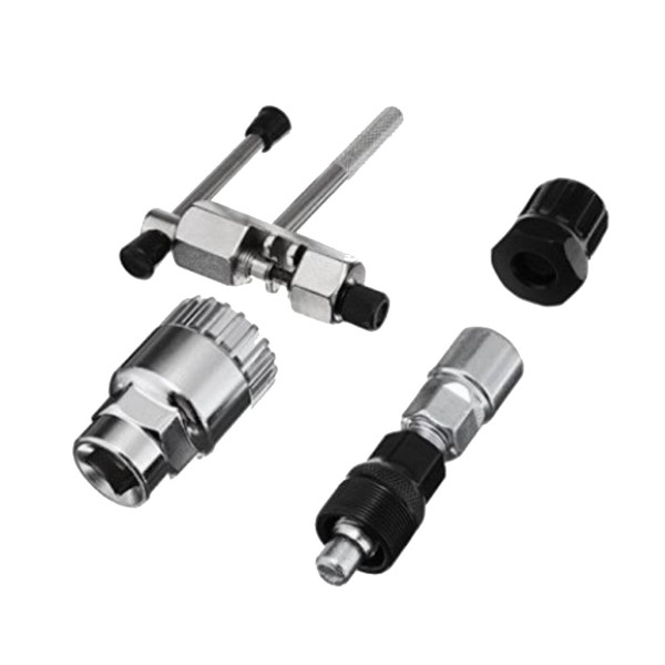 自転車 チェーンカッター ミドルシャフトスリーブ シルバー スペアピン付き 工具セット チェーン修復工具 自転車修理工具 取り外しと取り付け(4点セット )