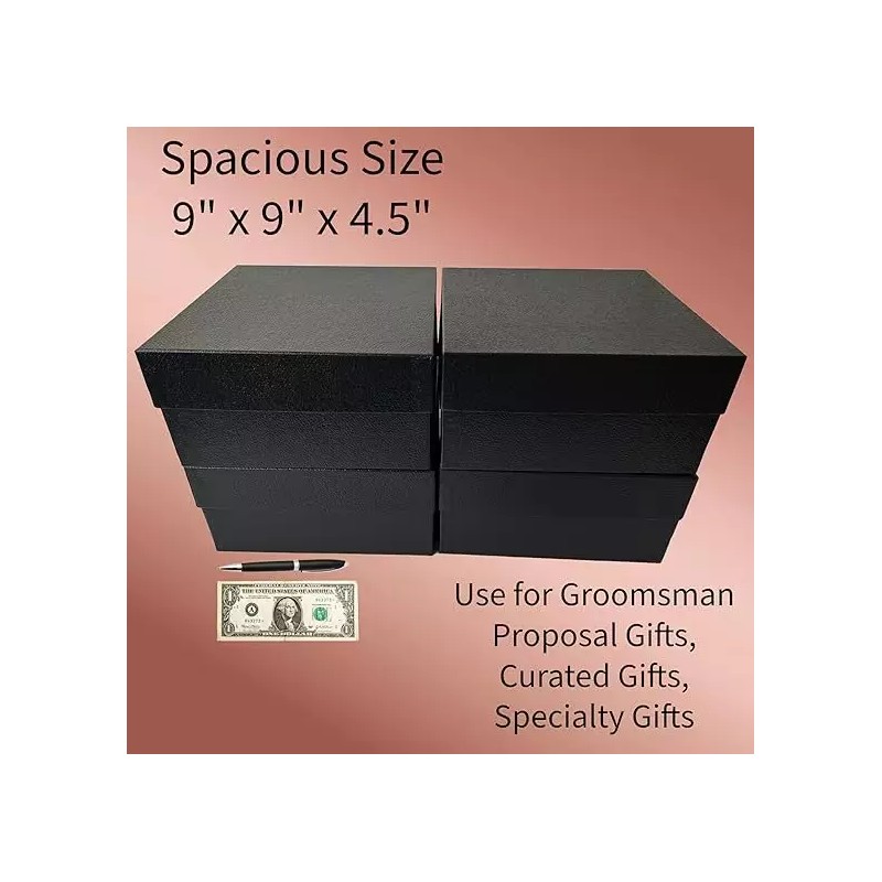 4 Bridesmaids Proposal Luxury Boxes-Black Embossed-2 Piece Rigid Lid and Base-9"