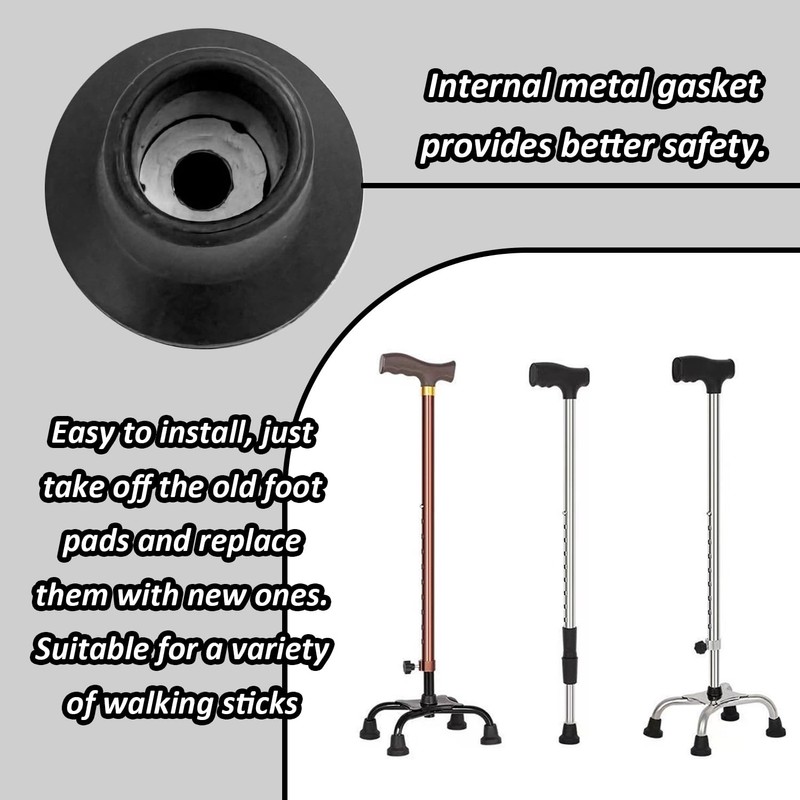 1.This walking stick accessory set contains 4 walking stick foot pads and 1 walking stick hand rope, which is suitable for replacing and strengthening the non-slip function of the walking stick.