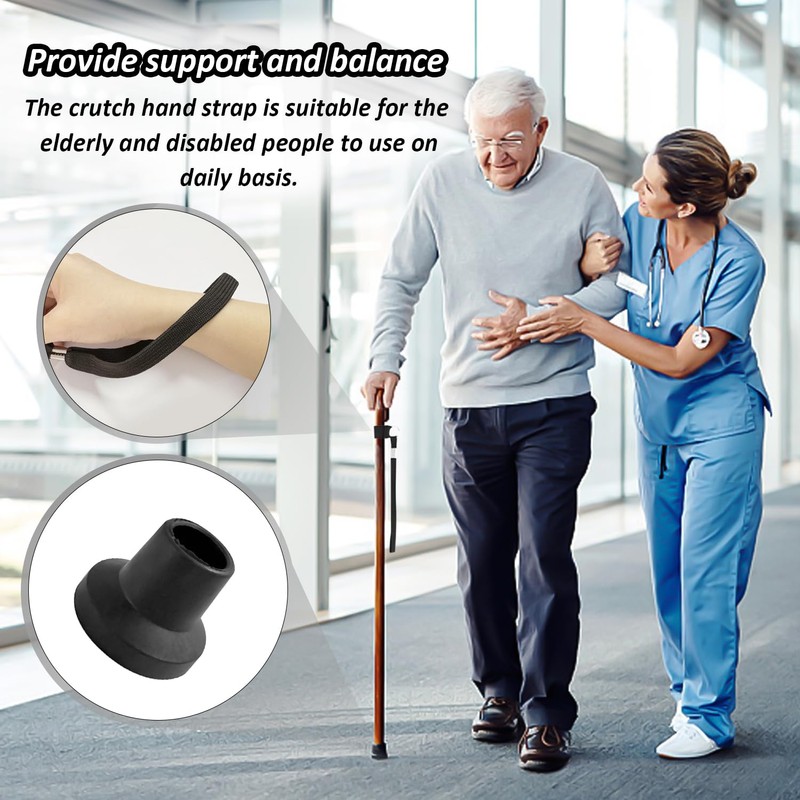 - [Product content] You will receive 4 walking stick foot pads and 1 walking stick hand rope. The size of the foot pad is 16mm and the color is black. The hand rope is made of nylon and metal, and the color is black. It is suitable for replacing and strengthening the non-slip function of crutches.