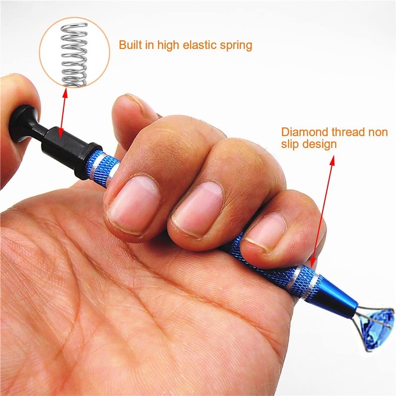 Relieves the fatigue of a long operation with reverse mechanism design. Easy to release piston and prongs grip beads, jewels, small screws and other