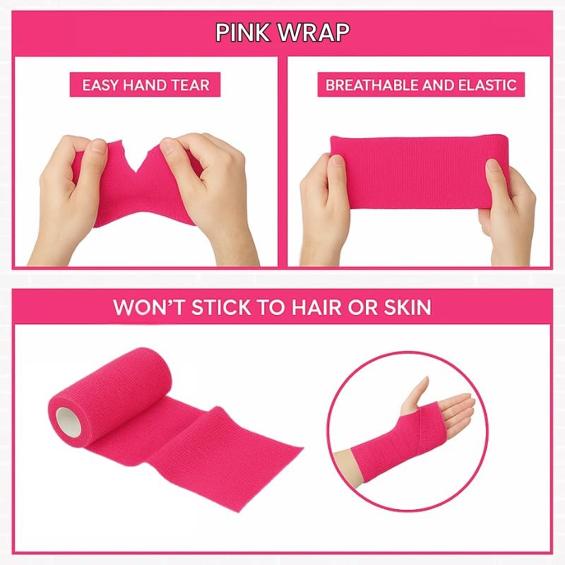 - Self-Adhering, No Clips Needed – Wraps securely by sticking to itself, not fur or skin, eliminating the need for pins, clips, or adhesives.
