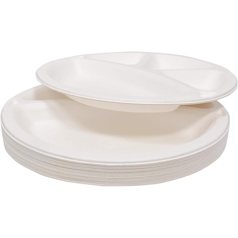 - <<>> 11" STRONG 4 COMPARTMENT PLATES 25pcs: Made from high density Bagasse sugar cane pulp Paper Plates are super rigid do not not fall apart Crumble or Dissolve when USED with Liquids and Hot foods <>PACK OF 25 PLATES <>Ideal for Birthday Party, Christmas Party, Business Events, Home, Office, School, Picnic BBQ Party, Large Gatherings, Household Parties <> 4 COMPARTMENT DESIGN:- The innovative 4 Compartment layout allows for Easy organization and separation of different Food items, Ensuring a neat and organized presentation for any meal