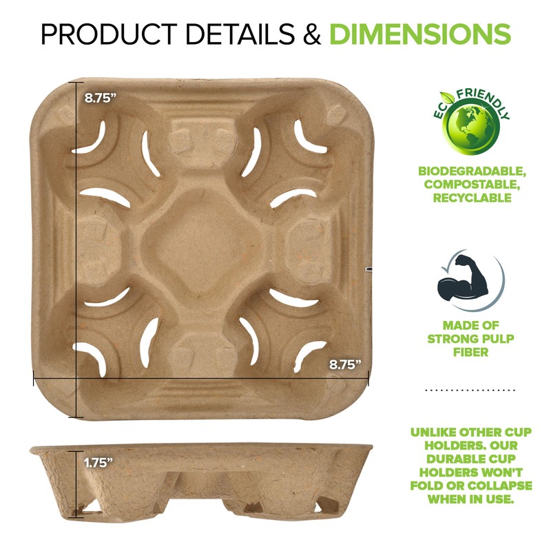 - Go Green: Protect Mother Nature by making an ecological purchase that will benefit both you and the environment. Our cup carriers are biodegradable, compostable, and recyclable.
